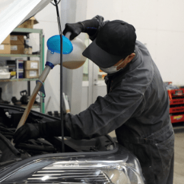 強力オゾン脱臭機を導入しております。オゾンによる特殊装置で、消臭も除菌もこれ一台。乗り換え時、たばこや他人の臭いが気になる場合にぴったりです。除菌も同時に行えるので、感染症の衛生対策にもつながります。30-40分ほどで作業が完了し車内の臭いが気にならなくなります。脱臭機のみのご依頼も歓迎。整備、検査ついでのご利用も可能です。別途ご依頼ください。お値打ち価格にて対応いたします。